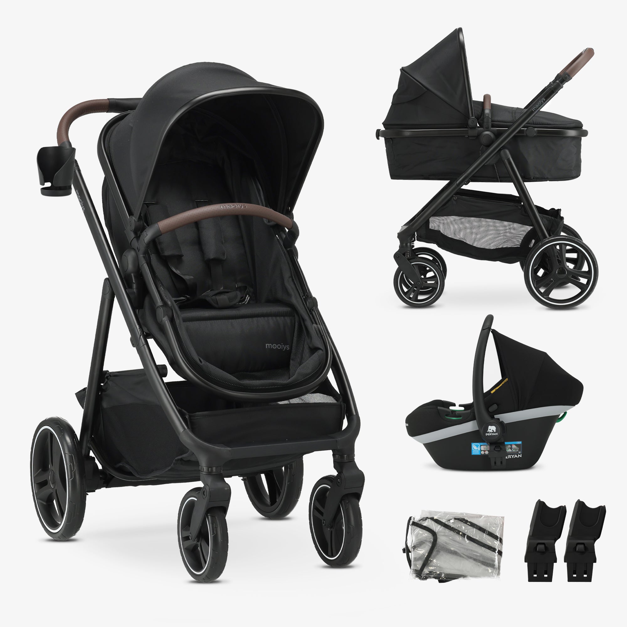 Mooiys Luca Kinderwagen 3in1 - Multi functionele Kinderwagen - inclusief autostoel - Zwart