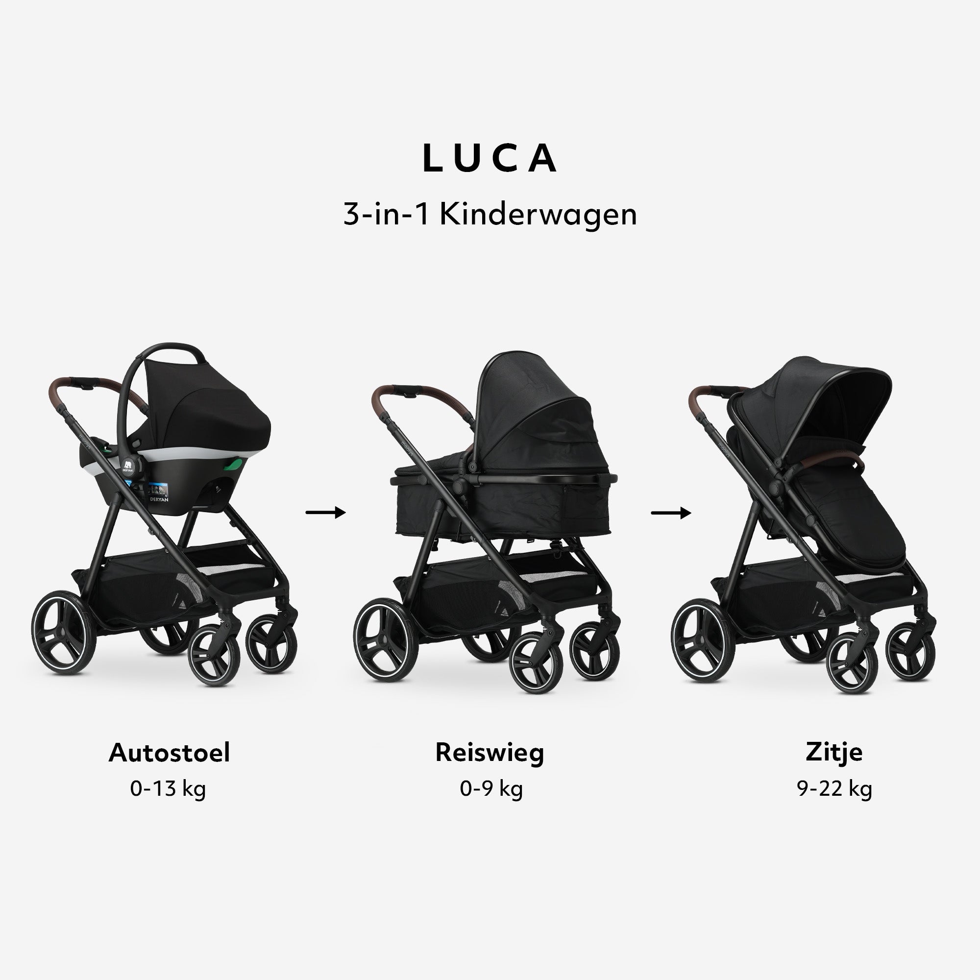 Mooiys Luca Kinderwagen 3in1 - Multi functionele Kinderwagen - inclusief autostoel - Zwart